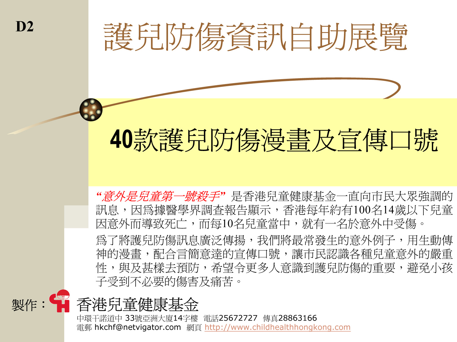 護兒防傷漫畫及宣傳口號 (家中狂玩意外生 戶外耍樂健康增)
