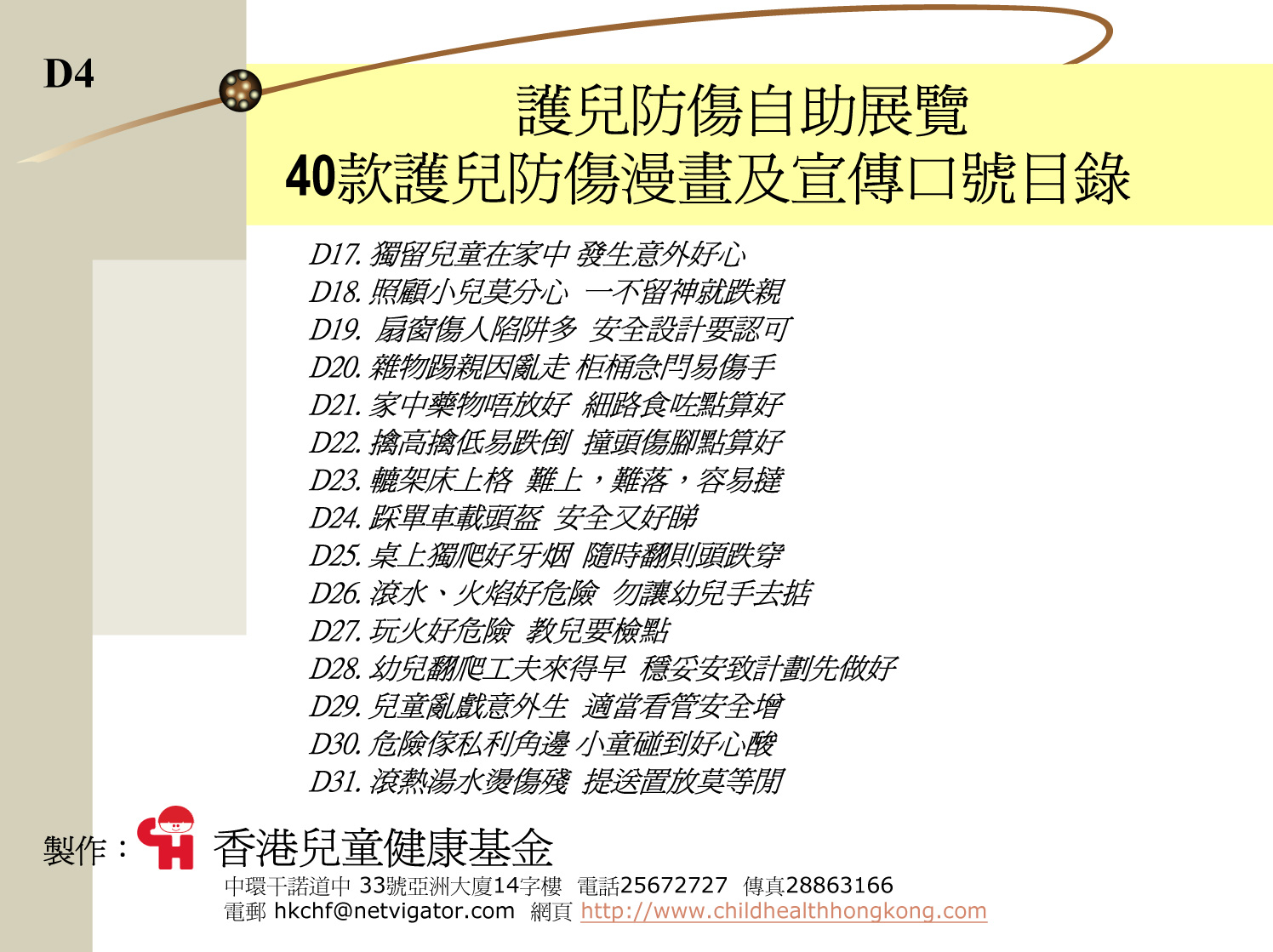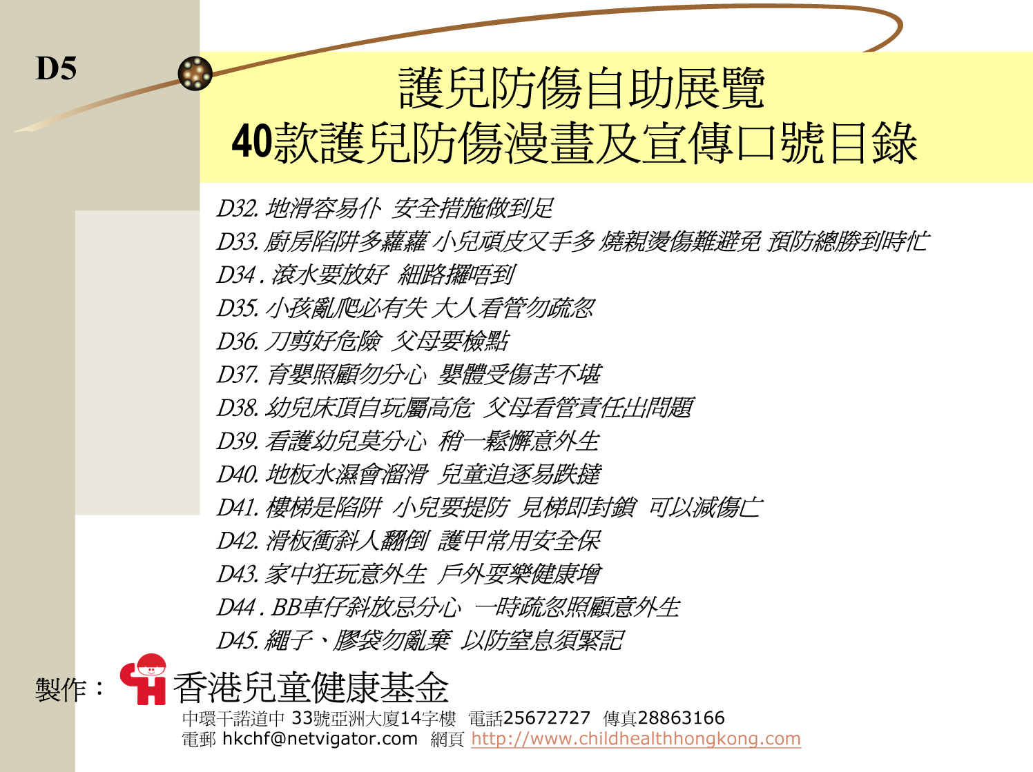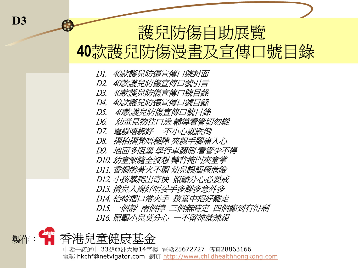 40款護兒防傷漫畫及宣傳口號目錄