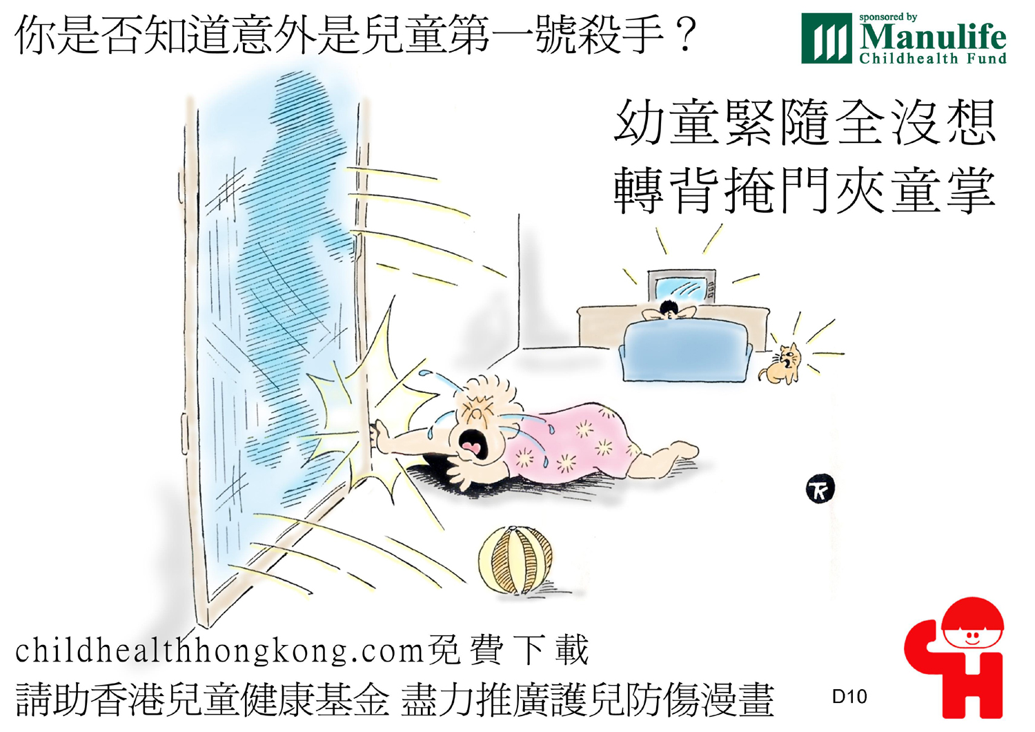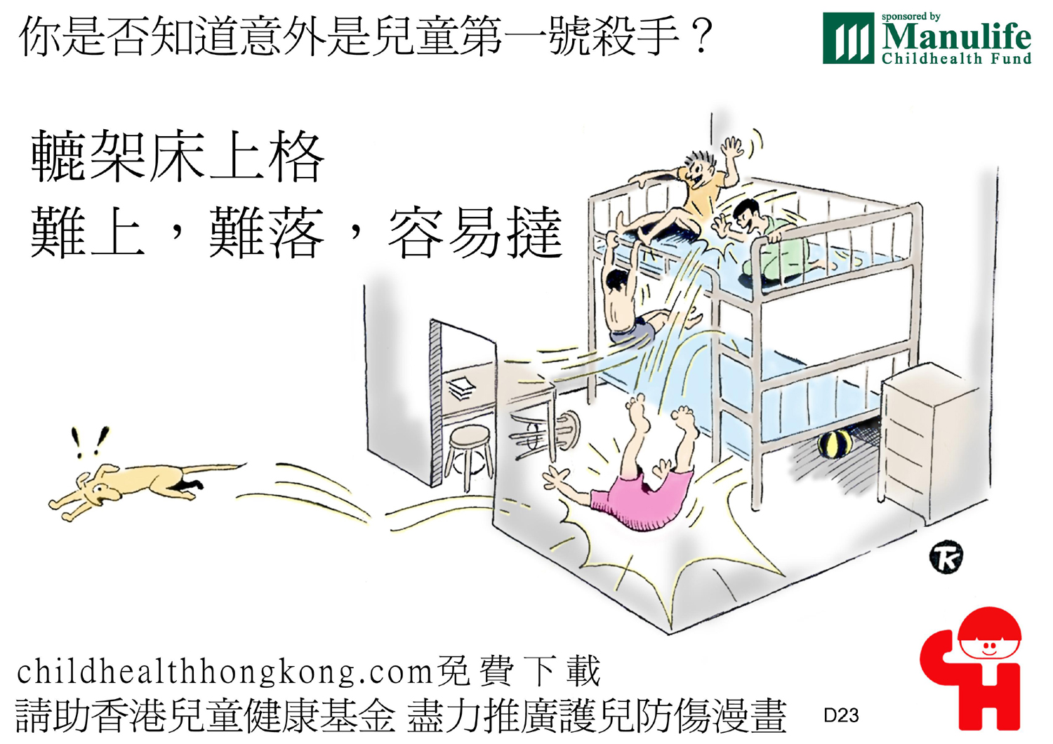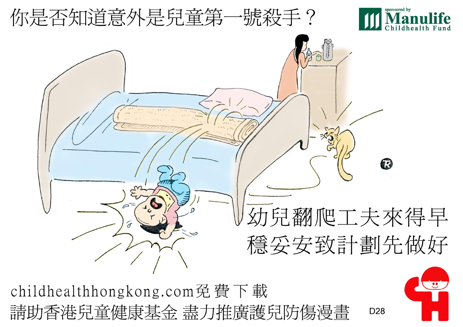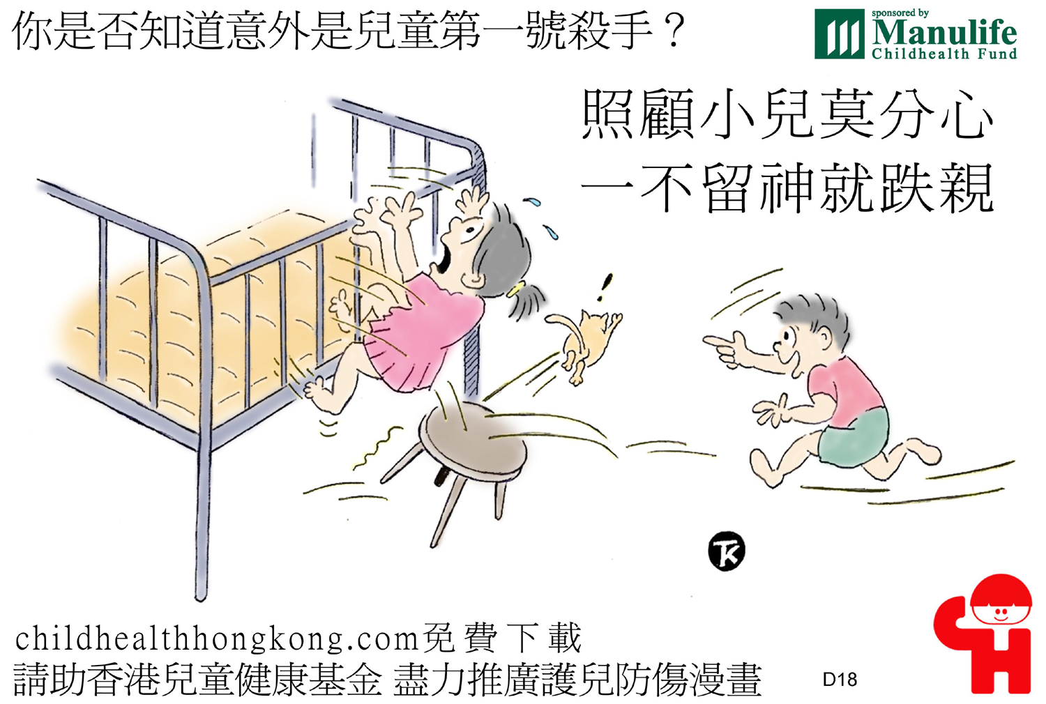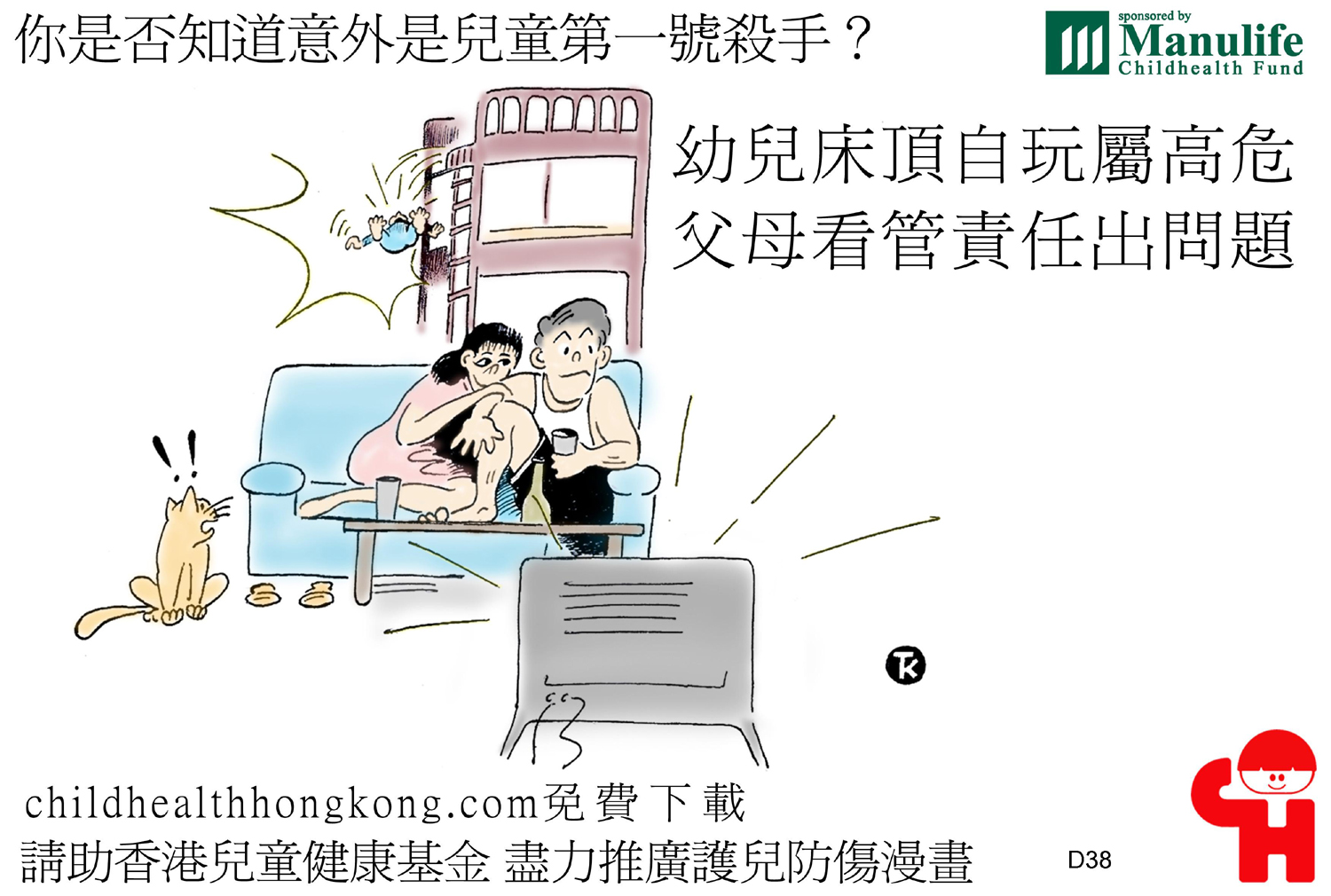 護兒防傷漫畫及宣傳口號 (幼兒床頂自玩屬高危, 父母看管責任出問題)
