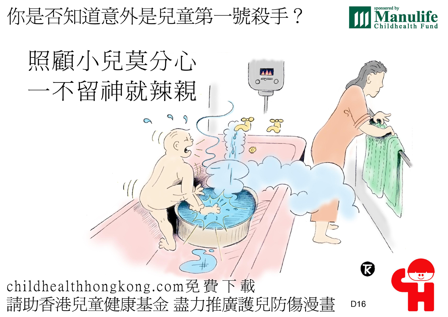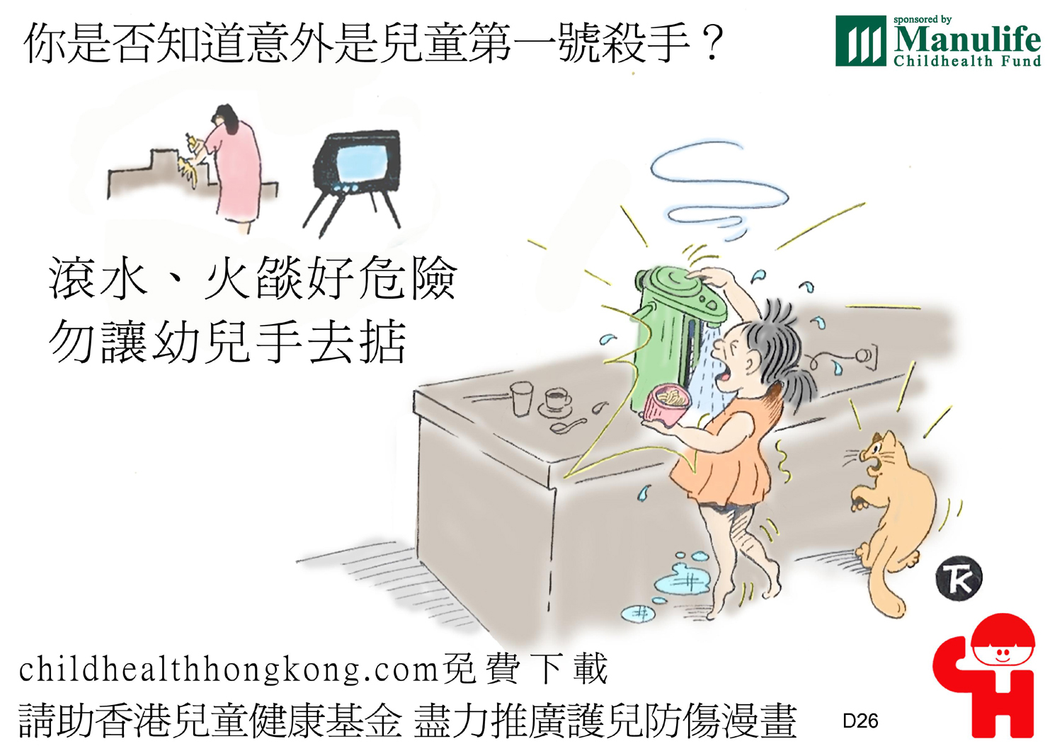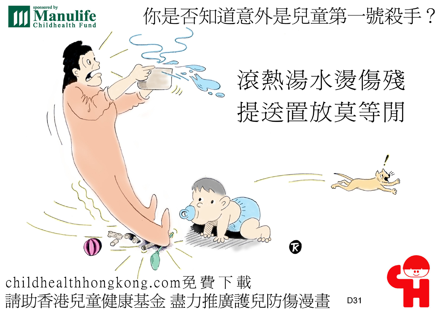 護兒防傷漫畫及宣傳口號 (滾水要放好, 細路拎唔到)