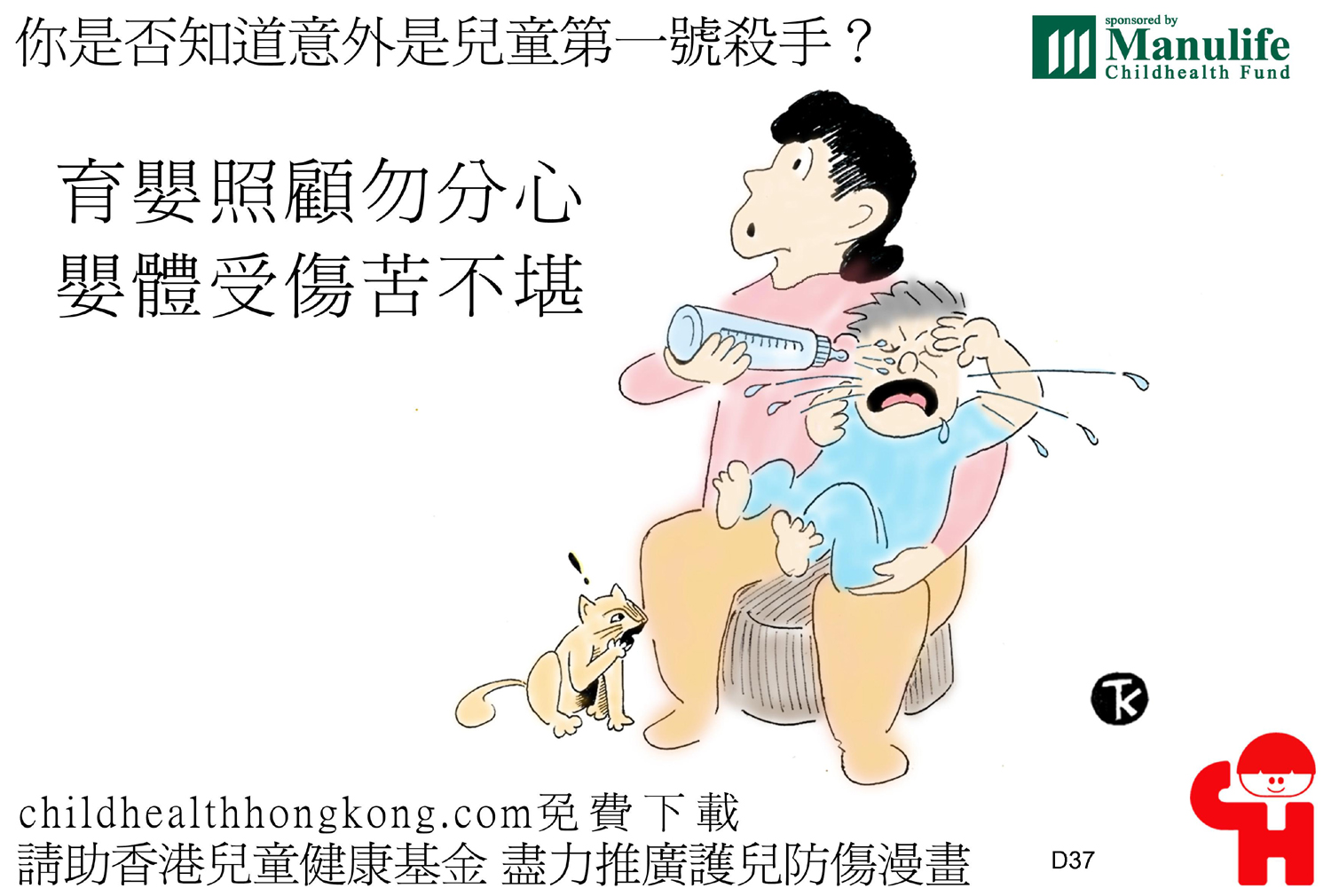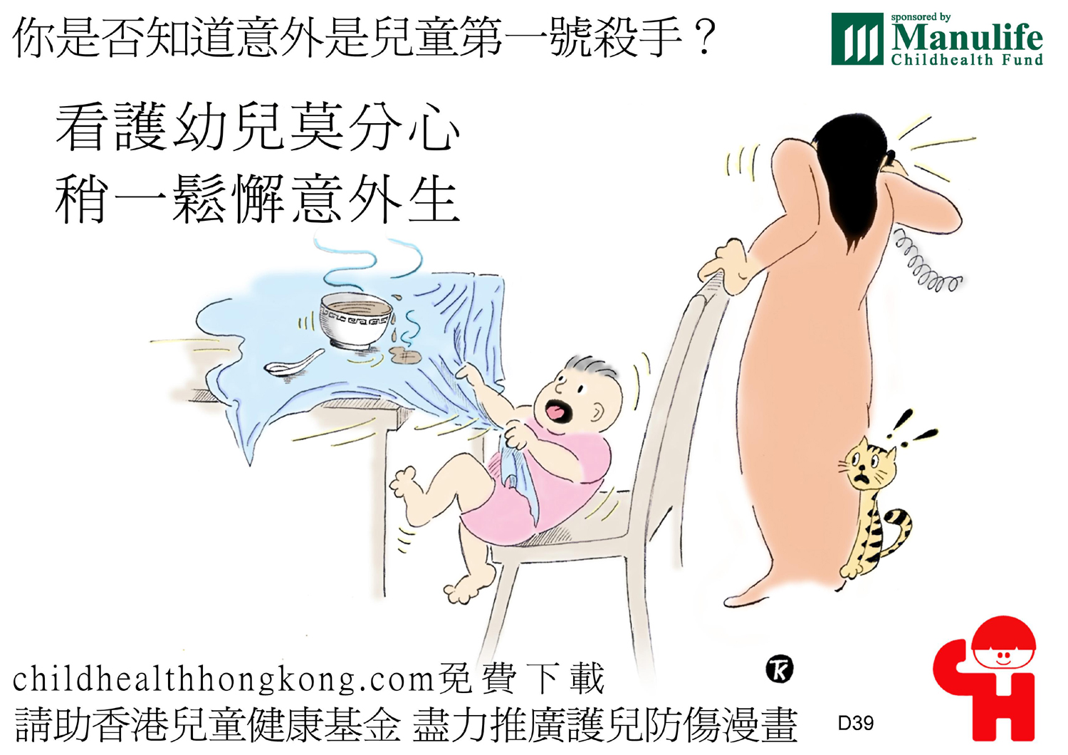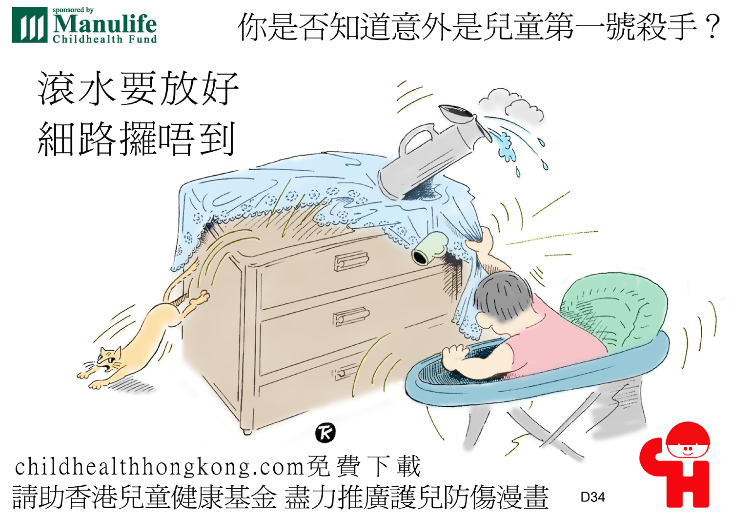 護兒防傷漫畫及宣傳口號 (滾水要放好, 細路拎唔到)