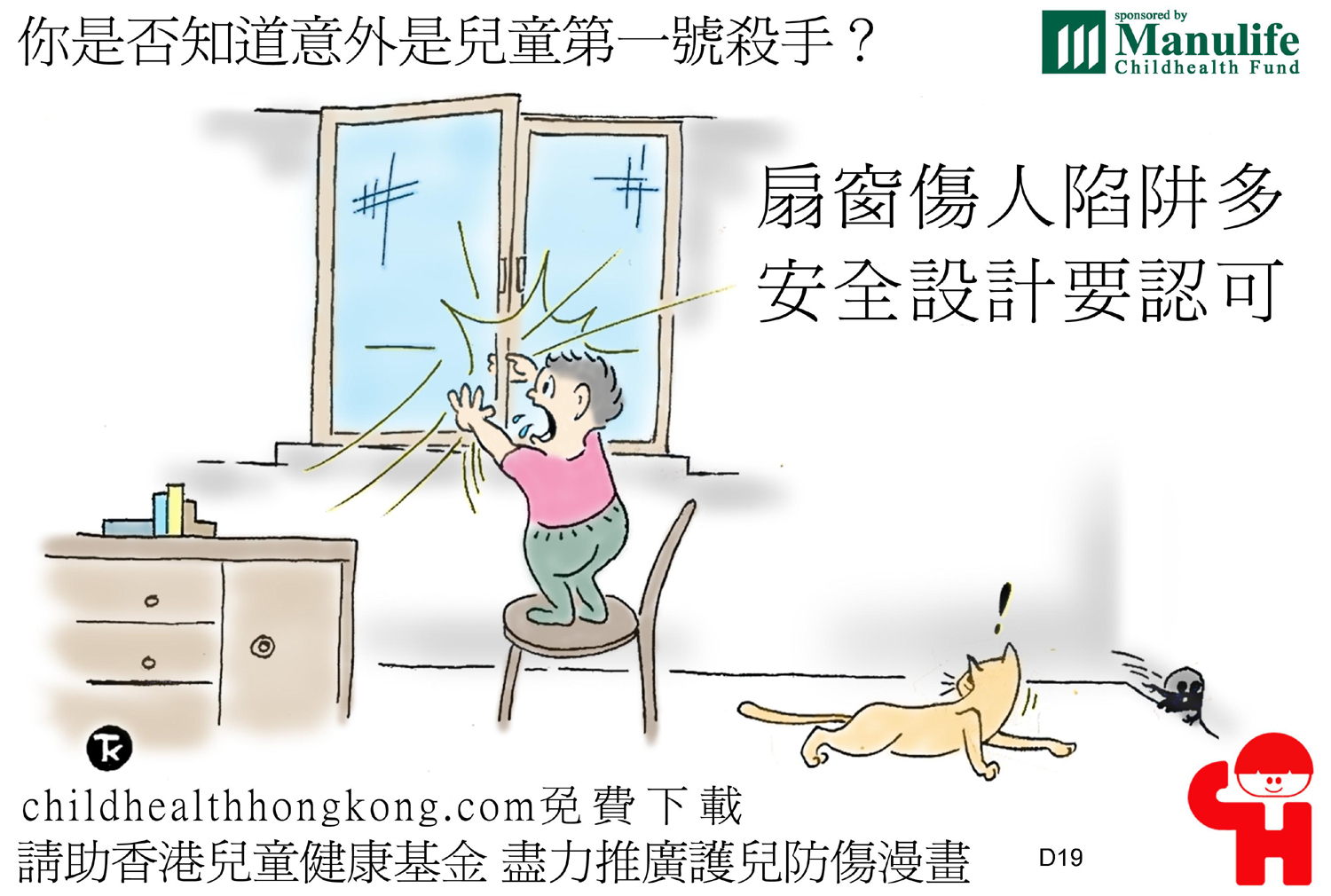 護兒防傷漫畫及宣傳口號 (扇窗傷人陷阱多 安全設計要認可)