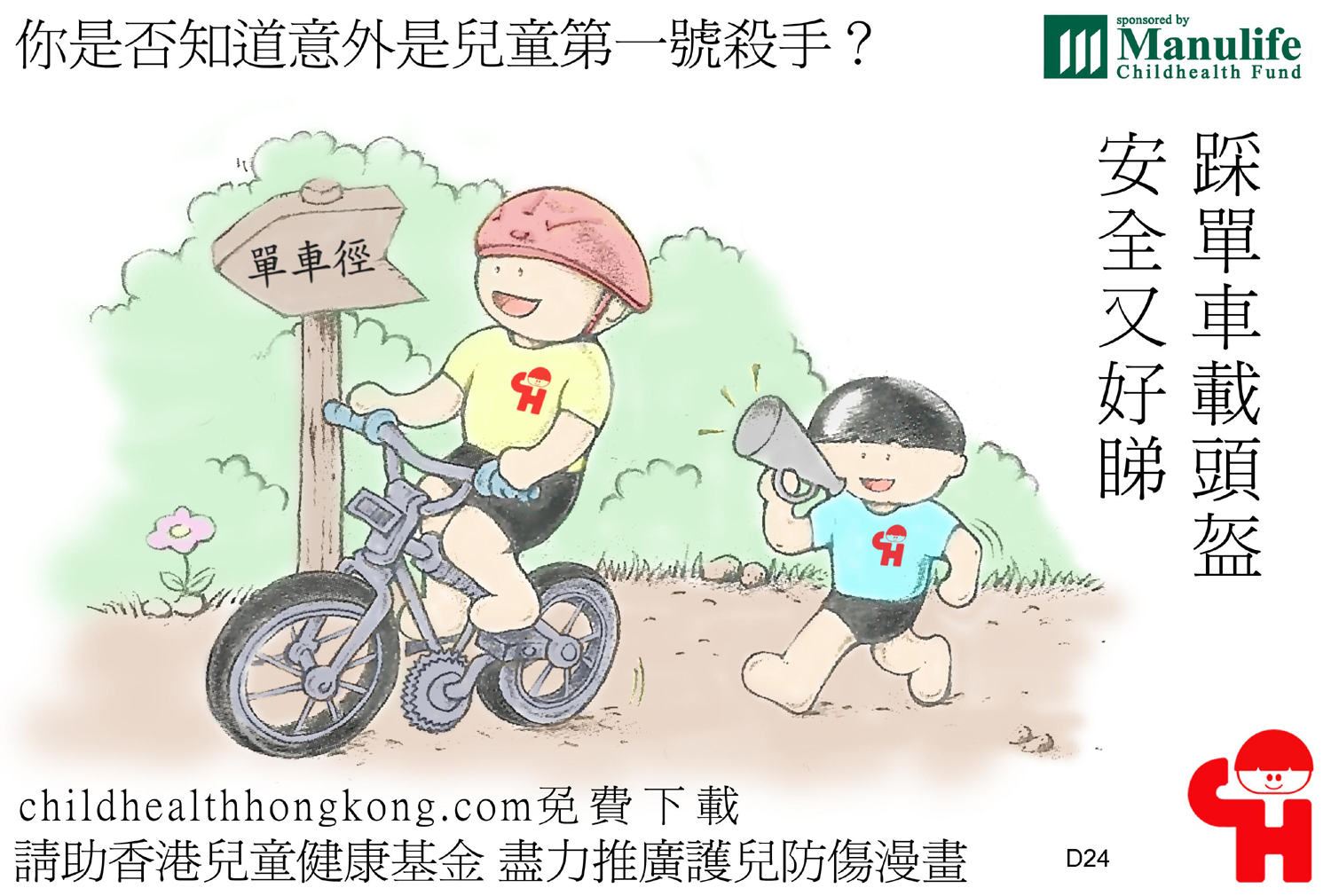 護兒防傷漫畫及宣傳口號 (踩單車戴頭盔 既安全又好睇)
