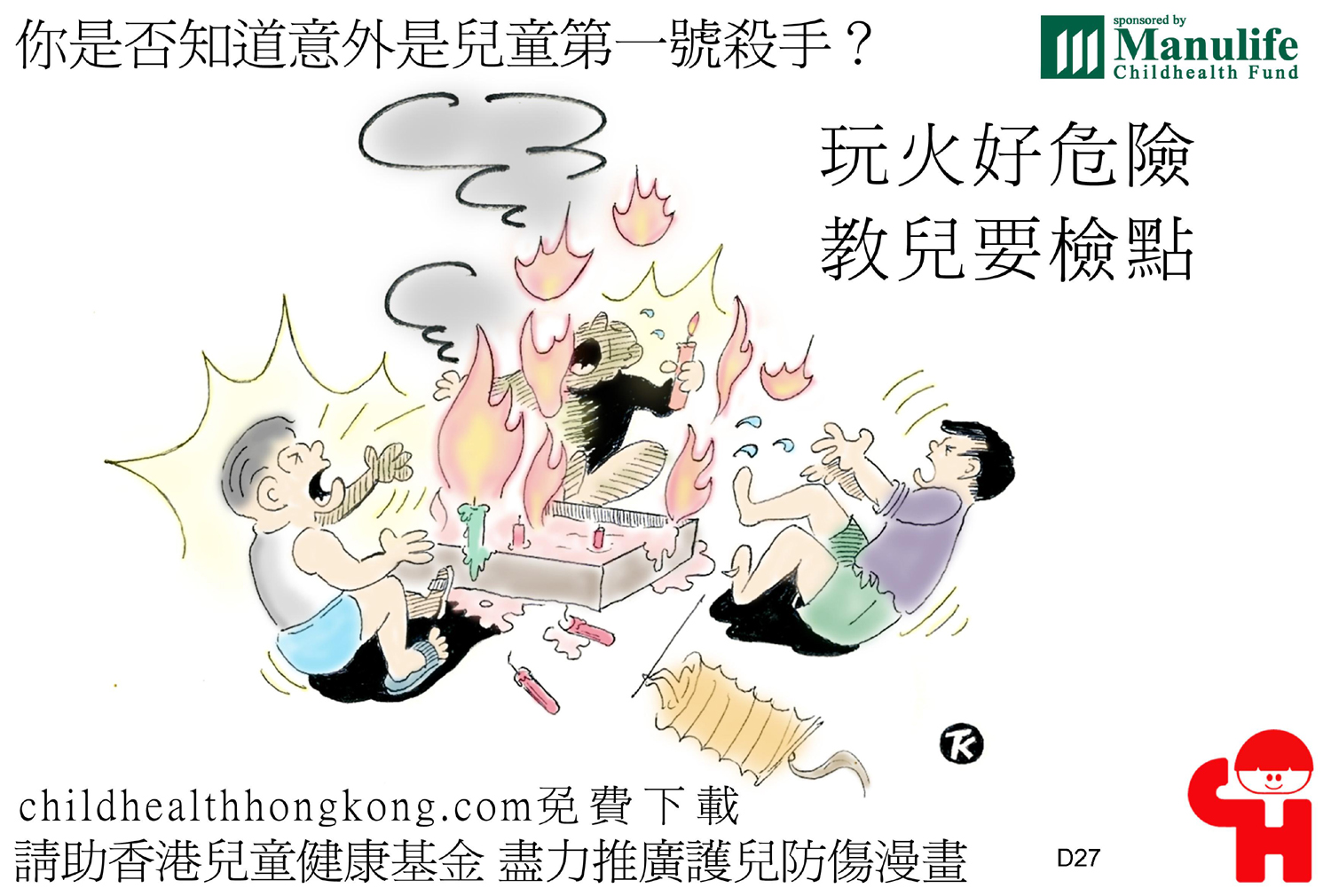 護兒防傷漫畫及宣傳口號 (玩火好危險 教兒要檢點)