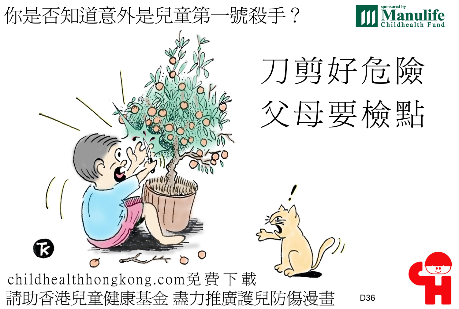 護兒防傷漫畫及宣傳口號 (刀剪好危險, 父母要檢點)