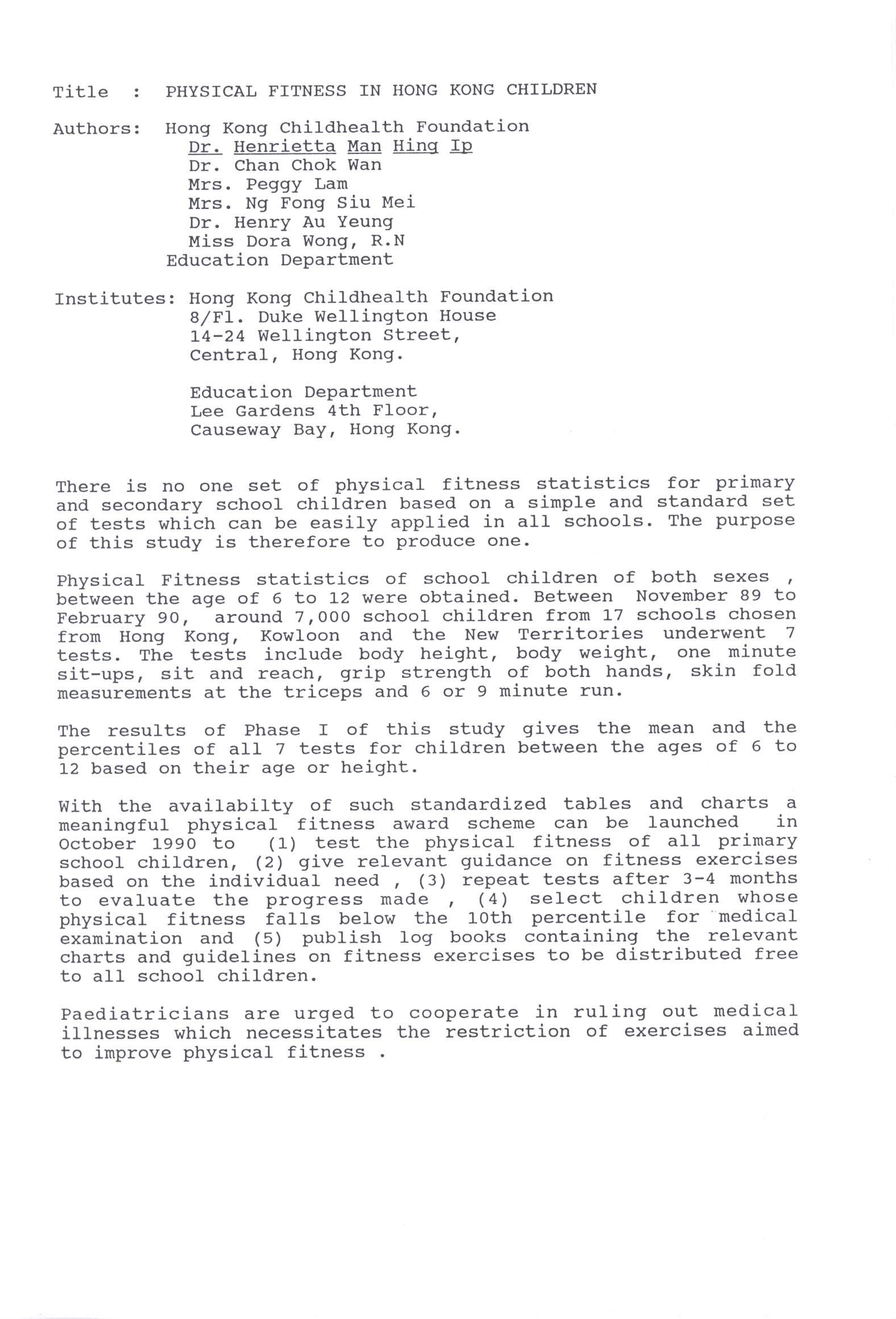 Home > More About Hong Kong Childhealth Foundation > Projects of the Foundation > The Promotion of Physical Fitness