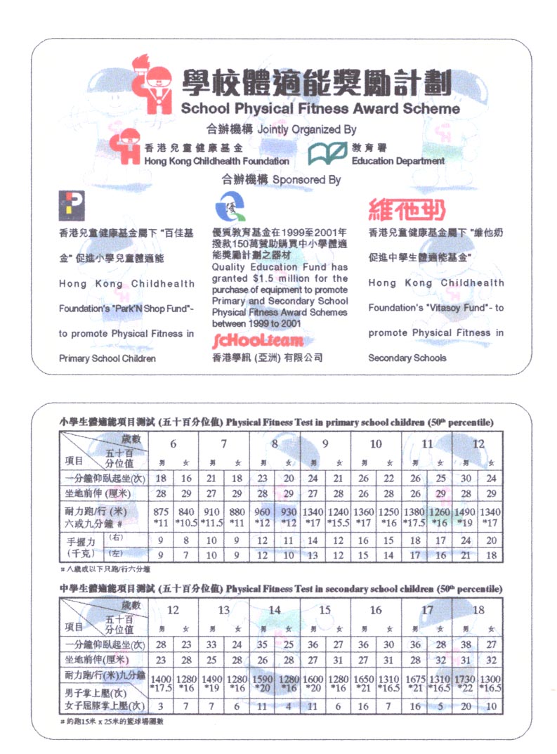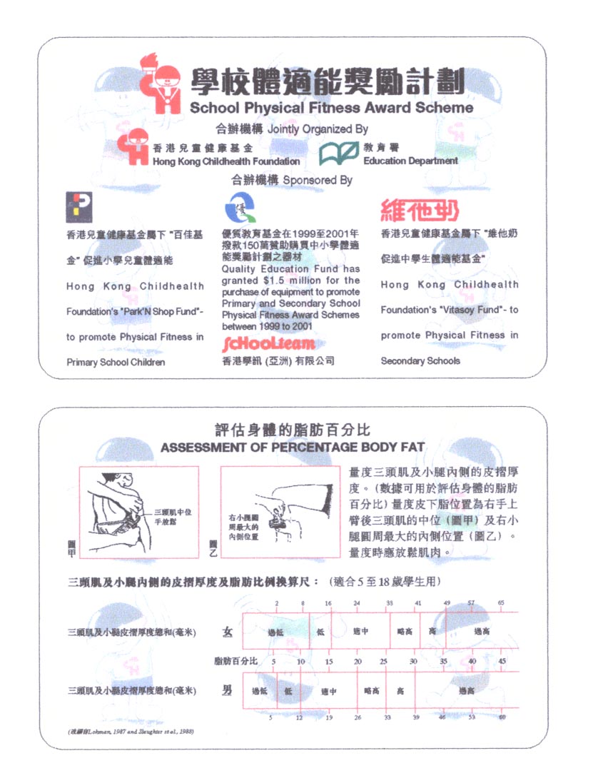 體適能測試資料咭和脂肪百分比 Physical Fitness Test Score Card and Percentage Body Fat